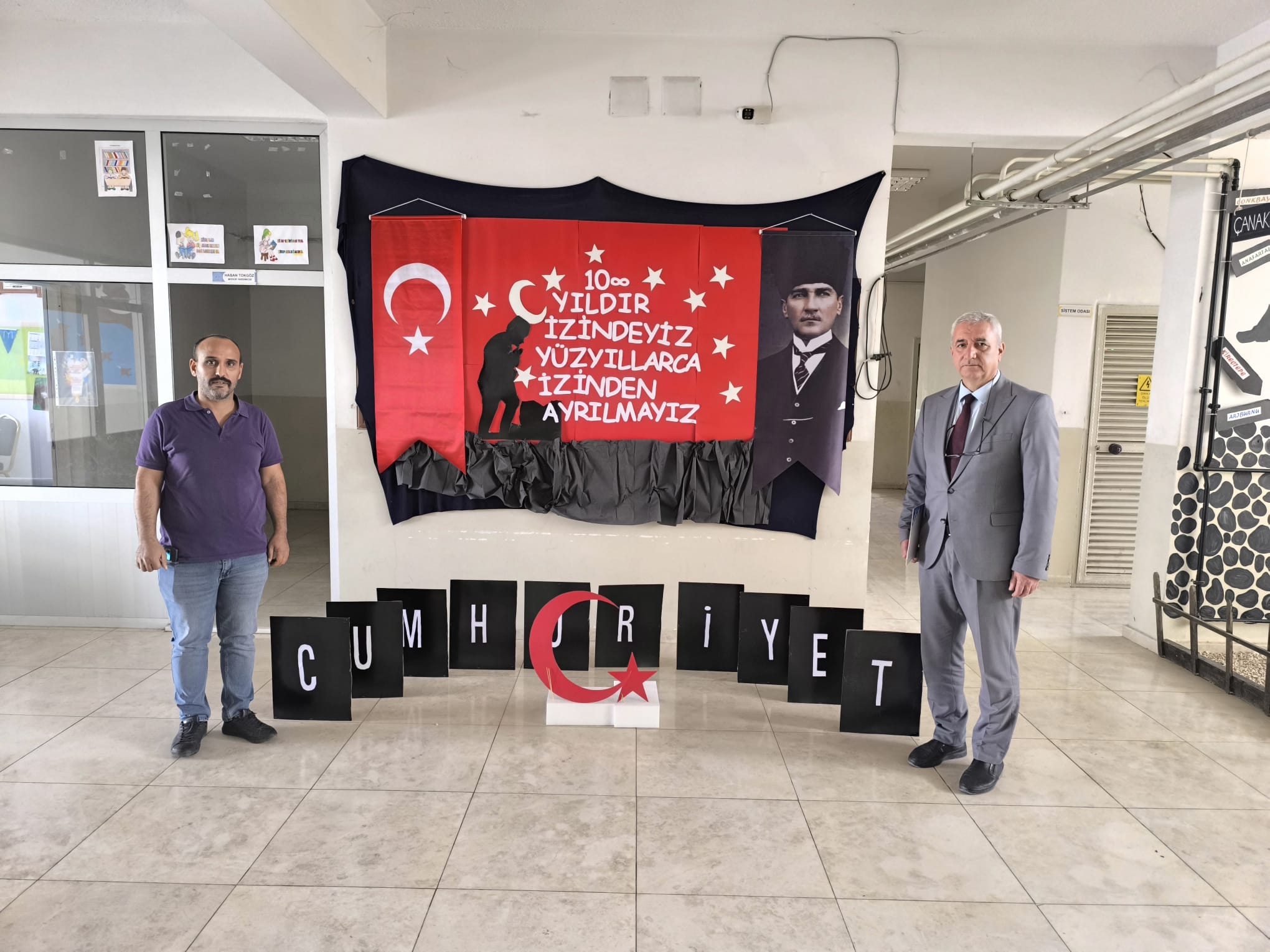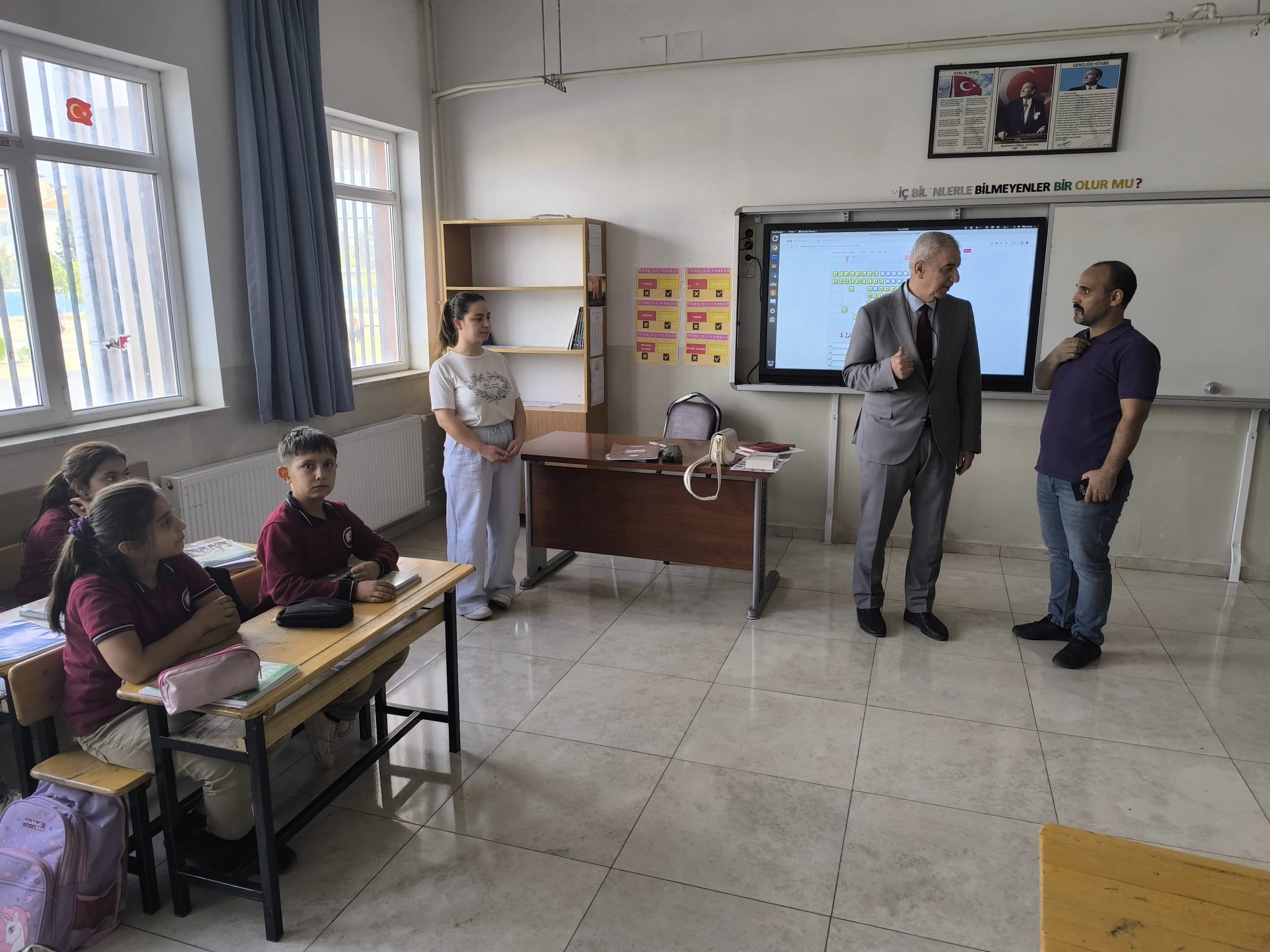 Okul Müdürü Mustafa GÖRGÜN ile birlikte sınıflarda derse girerek öğrencilerle bir süre sohbet ettiler.